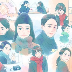 イラストは私の大好きなシーンを描きました。 ユンヒとセボム。 ユンヒは劇中でおりに触れて「寂しさ」という言葉で描写される女性です。 その寂しさがどこから来るのか、 彼女はなぜいつも感情を押し殺したように生きているのか、 それらが少しずつわかっていくと、 傍観者だったはずの私も、 ユンヒと心が重なっていくように感じます。 そんなユンヒの一番の支えになっているのがセボム。 彼女の、 春の新芽のようなしなやかで若い魂が誰も彼もを微笑ませ、 物語の先に希望があることを指し示します。