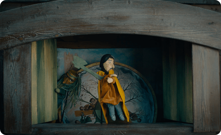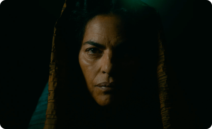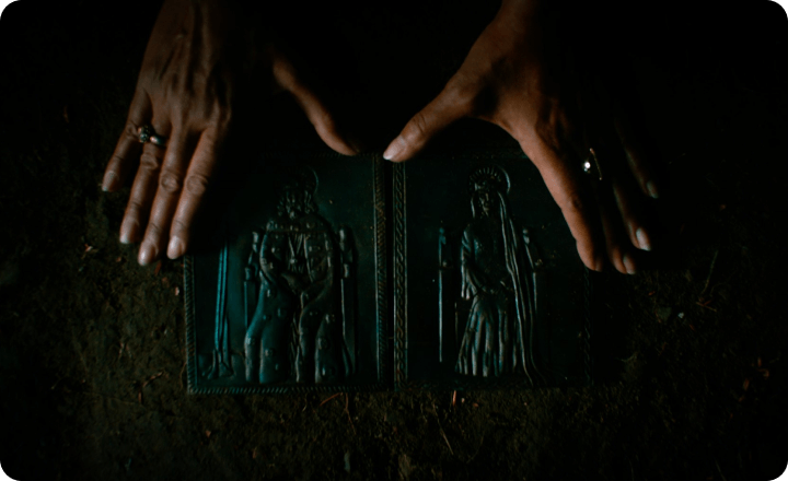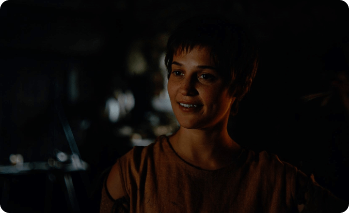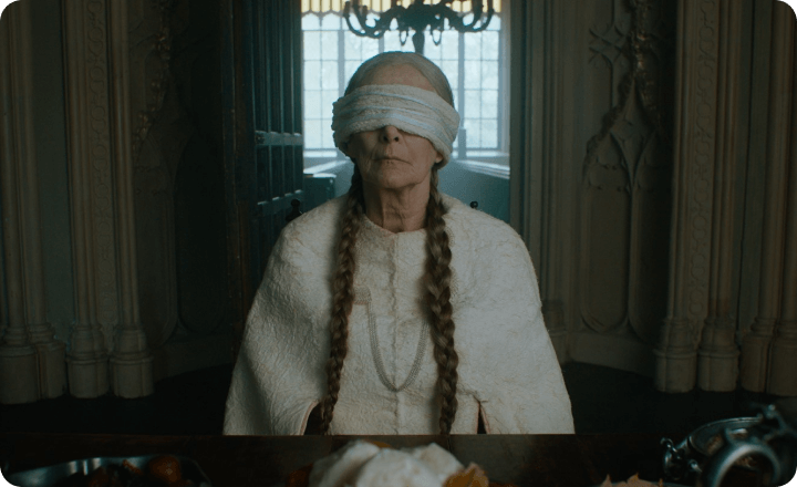 城にいる目隠しをした老婆は、原作では全ての黒幕であるモーガン・ル・フェイ。さらに、ガウェインを誘惑する“城主の奥方”と老婆はモーガンが2人の女性になった存在だという説もある。しかし本作の場合、モーガンはガウェインの母親として別途登場済み。そしてガウェインの恋人エセルと奥方はアリシア・ヴィキャンデルが一人二役で演じている…… 果たしてこれらが意味していることとは?
